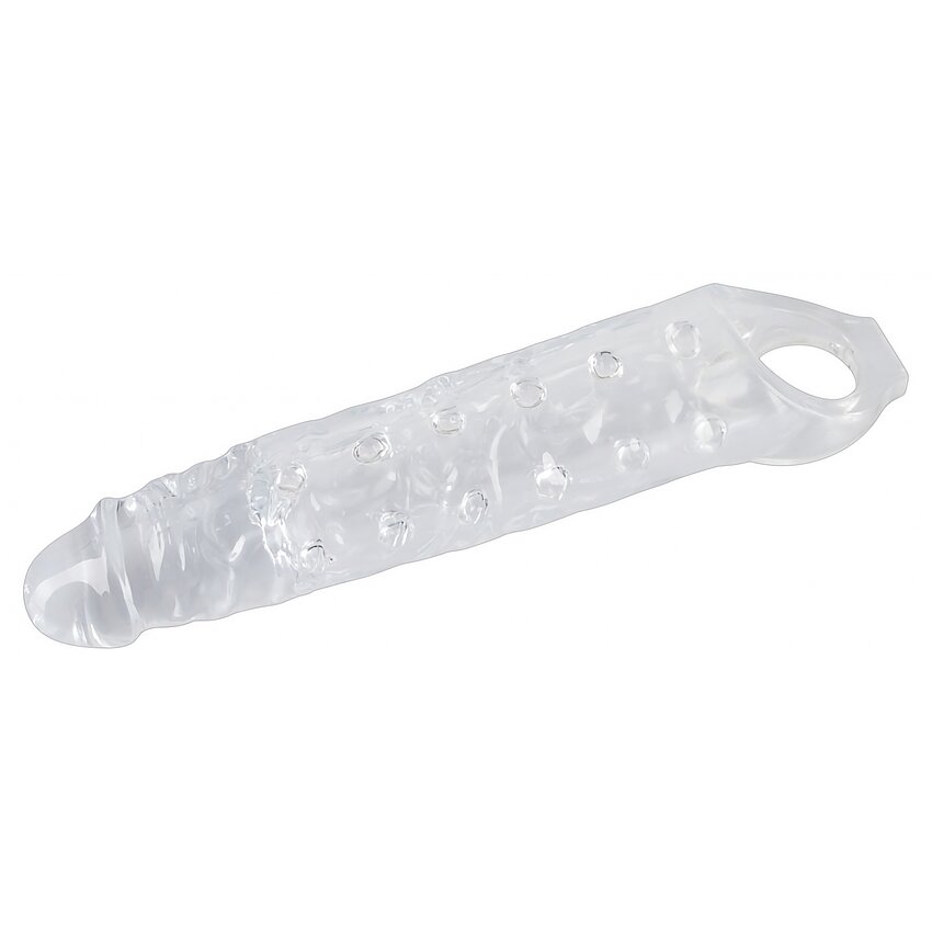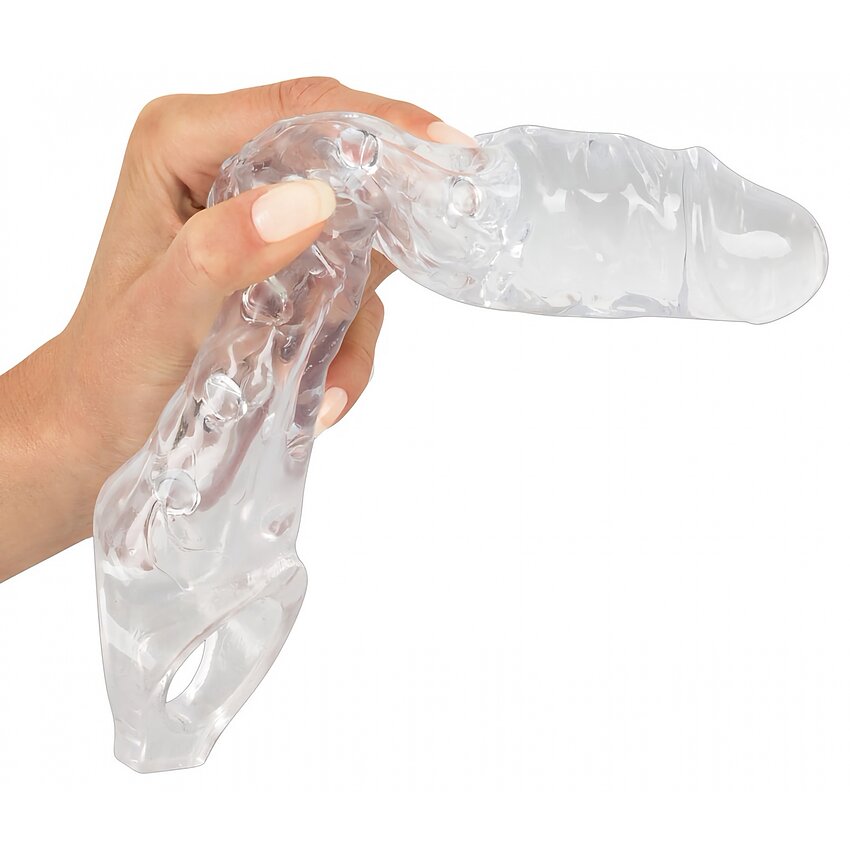 Prelungitor pentru falus străveziu care prelungește și îngroașă penisul în același timp. Mâneca ușor flexibilă care se potrivește corect pe sex și se evidențiază în raport cu glandului său solid, a venelor sale și a punctelor sale activatoare mari.