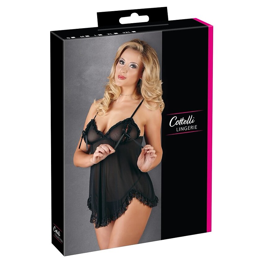 - înfățișare romantic - Fundițele mici și dantelă cu volane fac babydoll-ul special, oferind un concluzie senzual și seducător. - Materialul este din volănaș transparentă și elegantă, ceea ce nu doar că este sexy, dar și deosebit de confortabil. - Pachetul conține și un tanga care se potrivește corect cu babydoll-ul, formând un set complet.