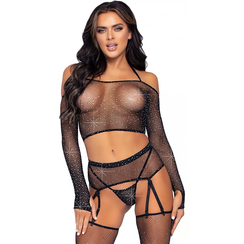 Set Leg Avenue Anna Negru XS-L Lenjerie Intima Dama Set