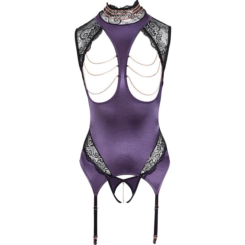 Corset Și Bikini Decupat Abierta Ușoară Mov este o creație de lenjerie uimitoare și neînchipuit de ademenitoare, gândită și concepută de remarcabilul brand de lenjerie Abierta Fina din Germania.