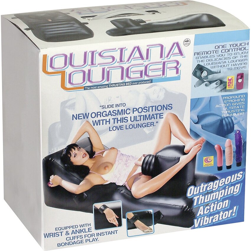 - Louisiana Lounger este ușor de folosit în nenumărate poziții, cuprinzând capacitatea să stimuleze orice femeie. - Este alcătuit din un motor de calitate, puternic, eficace și durabil. - Acțiunea profundă de împingere oferă delectare maximă prin mișcări de penetrare intense. - Este echipată cu manșete pentru încheieturi și glezne pentru jocuri instantanee de bondage. - Louisiana Lounger poate efectua până la 200 de bătăi pe minut pentru o bucurie intensă. - Toate cele trei vibratoare incluse pot fi utilizate separat, dând versatilitate în utilizare.
