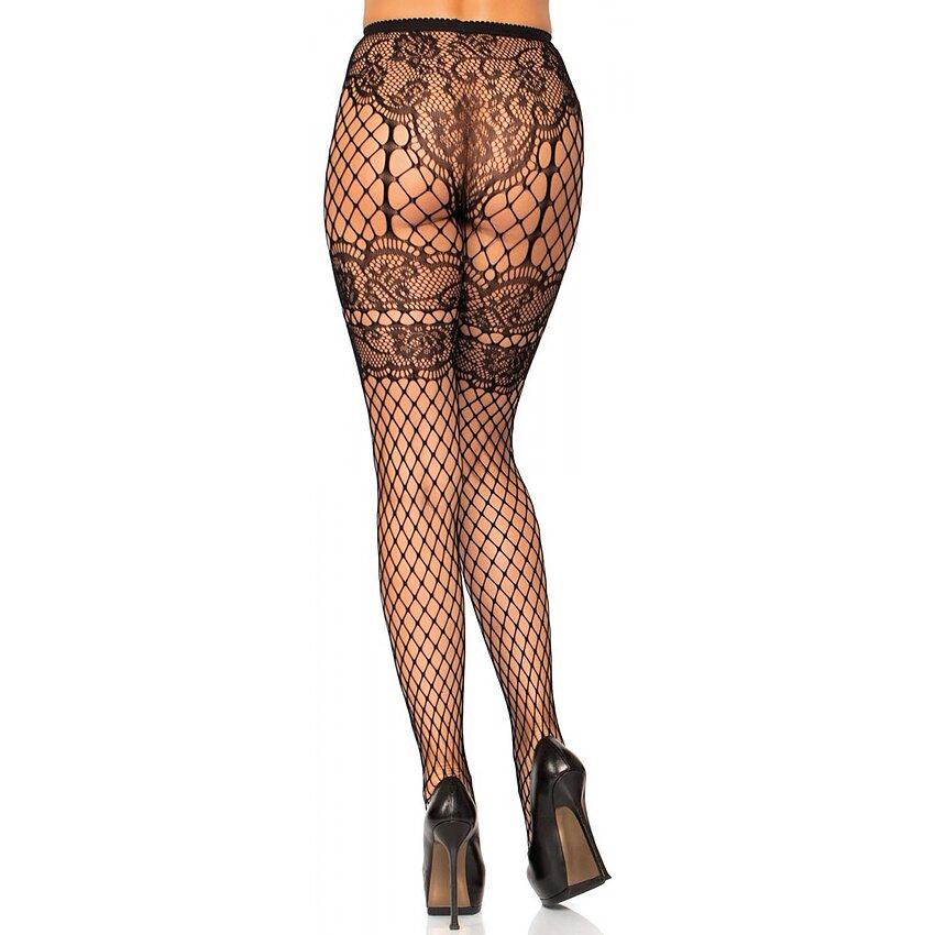 Dresuri Leg Avenue Lace French Cut Net Negru XS-L Ciorapi Portjartier