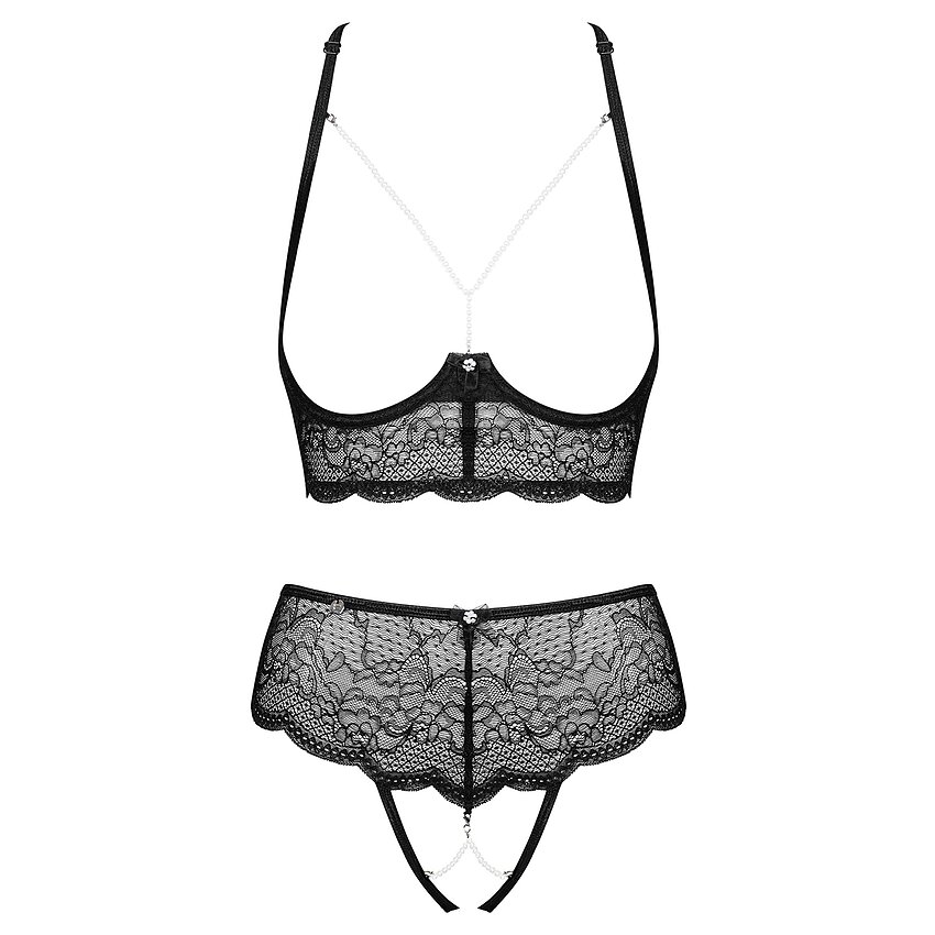 Set Obsessive Pearlove Negru este un obiect de lenjerie extraordinară și nemaivăzut de încântătoare, concepută și fabricată de prestigiosul brand de lenjerie Obsessive din Polonia.