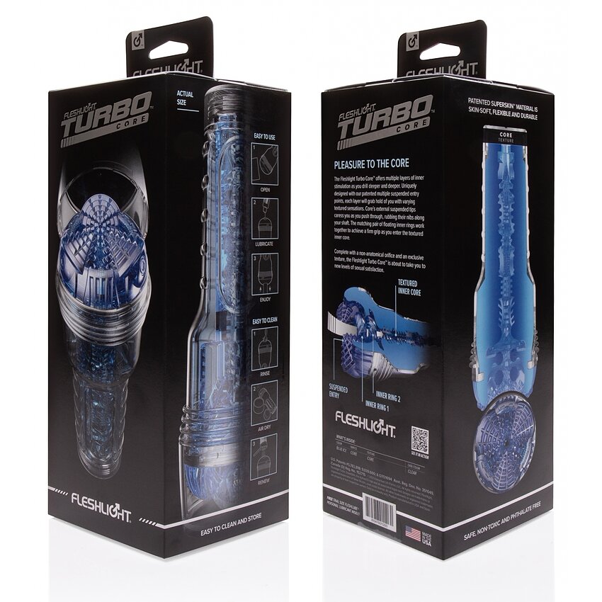 Fleshlight Turbo Core este un mecanism inovator, zămislit cu straturi multiple de stimulare interioară, replicând feelingurile intense. Designul său unic conține puncte de intrare suspendate, dând texturi variate. Cu o lungime de 25,4 cm și rezistent la apă, poate fi utilizat în medii umede. Culoarea albastră completează un element estetic distinctiv acestui fabricat sofisticat.