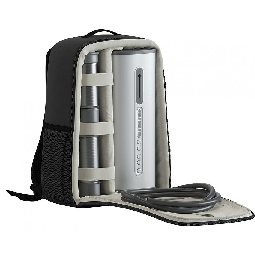 Valvele electronice permit control fin al nivelului de aspirație și al porțiunii stimulate, astfel încât reglajul să răspundă preferințelor personale. Pentru transport și păstrare, toate accesoriile vin într-un rucsac de calitate, care aduce discreție. Motorul industrial funcționează surprinzător de silențios, generând doar un zumzet redus.