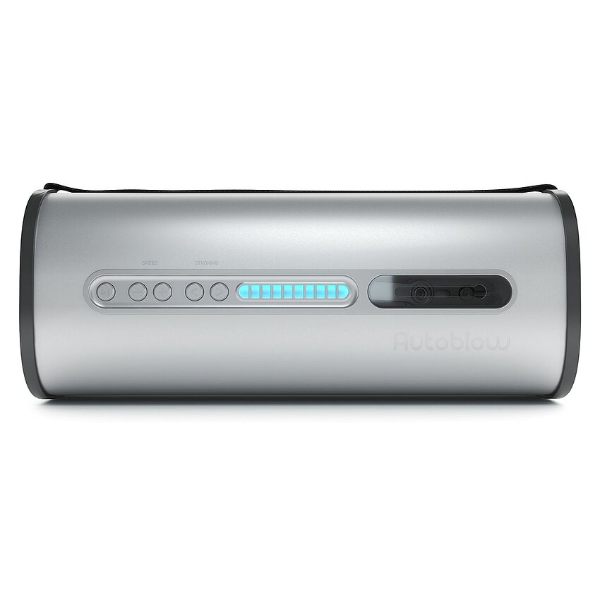 Mașina profesională Autoblow VacuGLIDE, carcasă din aluminiu extrudat, greutate robustă, trei mărimi de receptoare și reglaj al distanței de mișcare. Valve electronice pentru ajustare a nivelului de aspirație. Livrată cu rucsac discret; funcționare silențioasă.