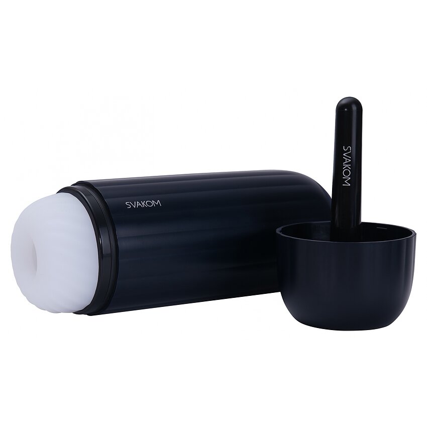 Carcasă ergonomică și sleeve din material sigur: sleeve-ul elastic din TPE este texturat pentru masaj, se poate îndepărta pentru curățare, iar carcasă durabilă asigură transport discret. Conectivitate Bluetooth și aplicația SVAKOM îngăduie personalizarea setărilor și controlul la distanță.