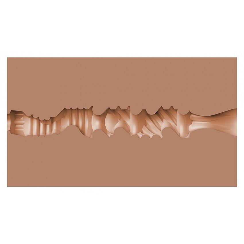 Fleshlight Ethereal inspirat de Eliza Ibarra conferă un manșon proiectat pentru variație tactilă printr-un partea interioară atent elaborat. Intrarea pornește cu un pasaj ondulat care conduce înspre o zonă cu inele și nervuri transversale, alternând texturi pentru senzații dinamice și controlate.