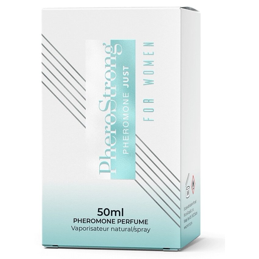 Parfum floral-chypre PheroStrong Just for Women, 50 ml — note de piper, hyacinth, iris și iasomie, bază caldă de patchouli, mosc, vanilie și chihlimbar. Formula discretă, persistentă, perfectă pentru uz zilnic și momente speciale.