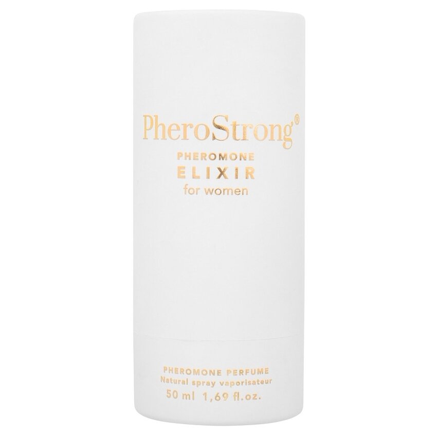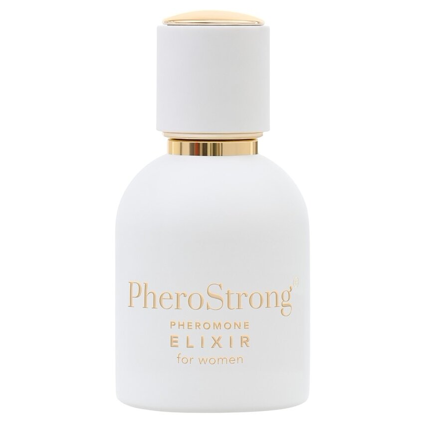Parfum cu feromoni PheroStrong Elixir pentru femei, 50 ml. Note proaspete de portocală siciliană, lămâie şi bergamotă; inimă fructată; bază caldă de mosc alb, chihlimbar şi vanilie Madagascar. Formula discretă, pentru uz extern — aplicare pe încheieturi, gât, în spatele urechilor.