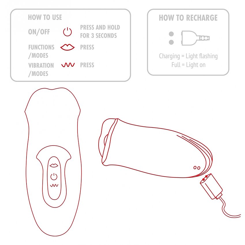 TOYJOY The Kisser Stimulator Roșu: design din silicon cu buze flexibile pentru stimulare precisă. 3 tipuri de vibrații, 4 viteze, reîncărcabil Li-Ion, rezistent la apă. Compact 13x5.7 cm.