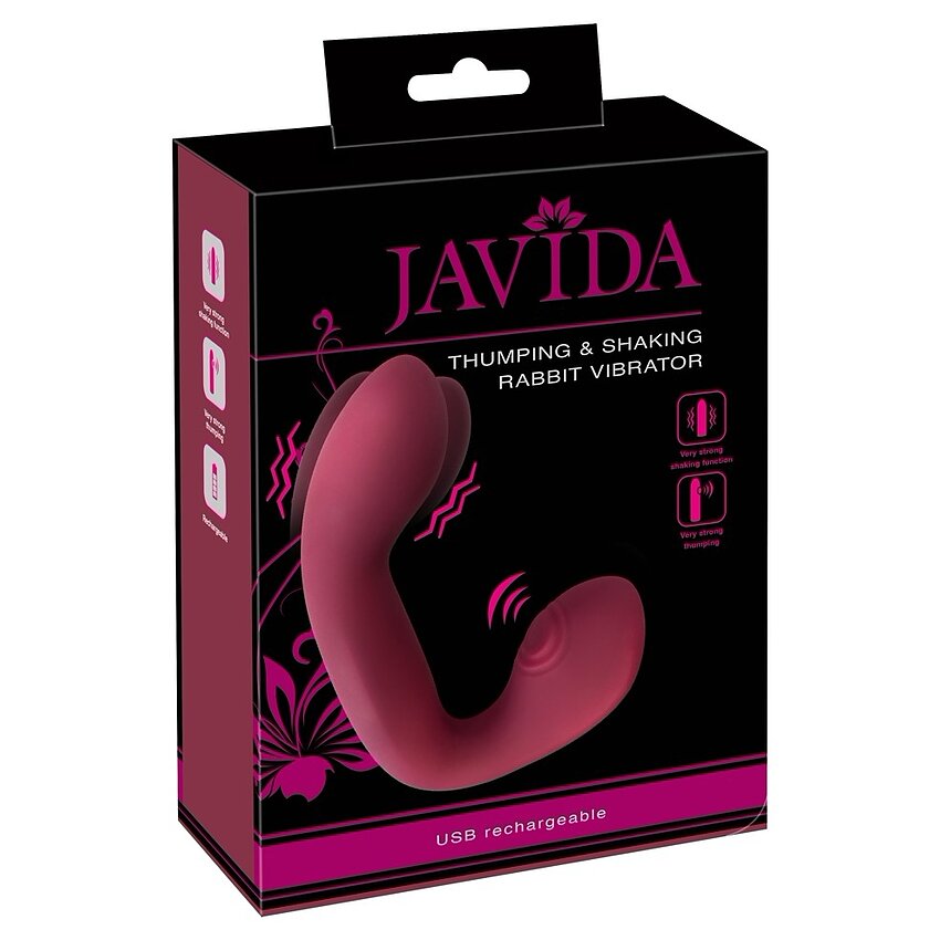 JAVIDA Thumping Shaking Rabbit furnizează stârnire profundă printr-o formă îndoit realizat pentru punctul G. Fracțiune superioară a dispozitivului pulsează și se mișcă pentru un frecție partea interioară plăcut, în timp ce capul pentru clitoris transmite impulsuri de ciocănit.