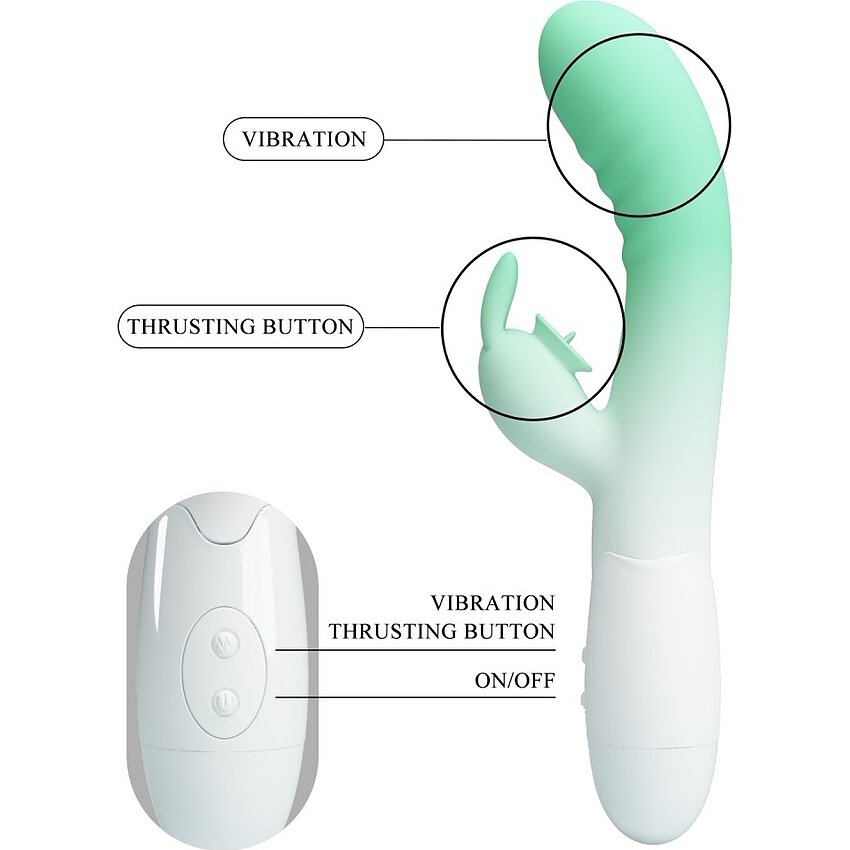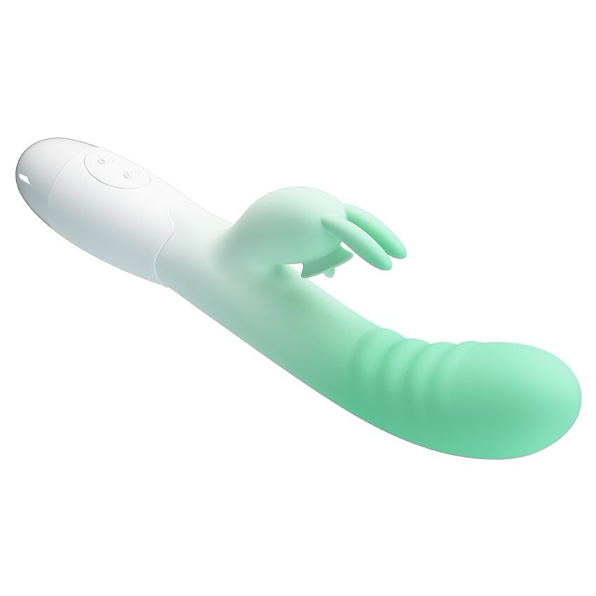Vibrator bunny discret și eficient, cu corp subțire din silicon mătăsos și braț extern pentru stârnire clitoridiană. Oferă 30 chipuri de vibrație, control intuitiv cu un buton și design ergonomic, ușor de curățat.
