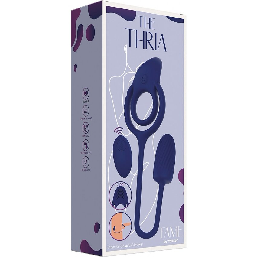 Produs din silicon lichid destul de moale, Thria este rezistent la apă (IPX7) și reîncărcabil. Cele două motoare lucrează sincronizat sau separat, iar cele 10 moduri de vibrație transmite variații precise între pulsații și intensitate.
