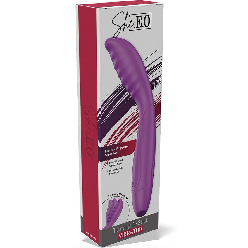 Vibrator She EO cu cap percutant pentru stârnire a punctului G și tija vibratoare. 10 maniere combinate de vibrație și tapping, silicon sigur pentru corp, cu acumulator și rezistent IPX7. Extindere inserabilă 16 cm, diametru 2.5 cm.