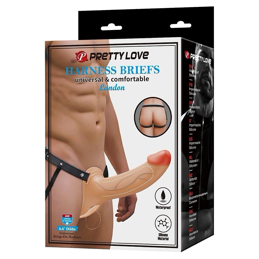Ham strap-on reglabil Pretty Love Landon cu dildo gol din silicon realist. Cingătoare din nylon se reglează ușor, căptușeală interioară moale pentru confort. Forma goală a dildo-ului dăruiește stimulare tare partenerului și permite mișcări mai ferme. Rezistent la apă.