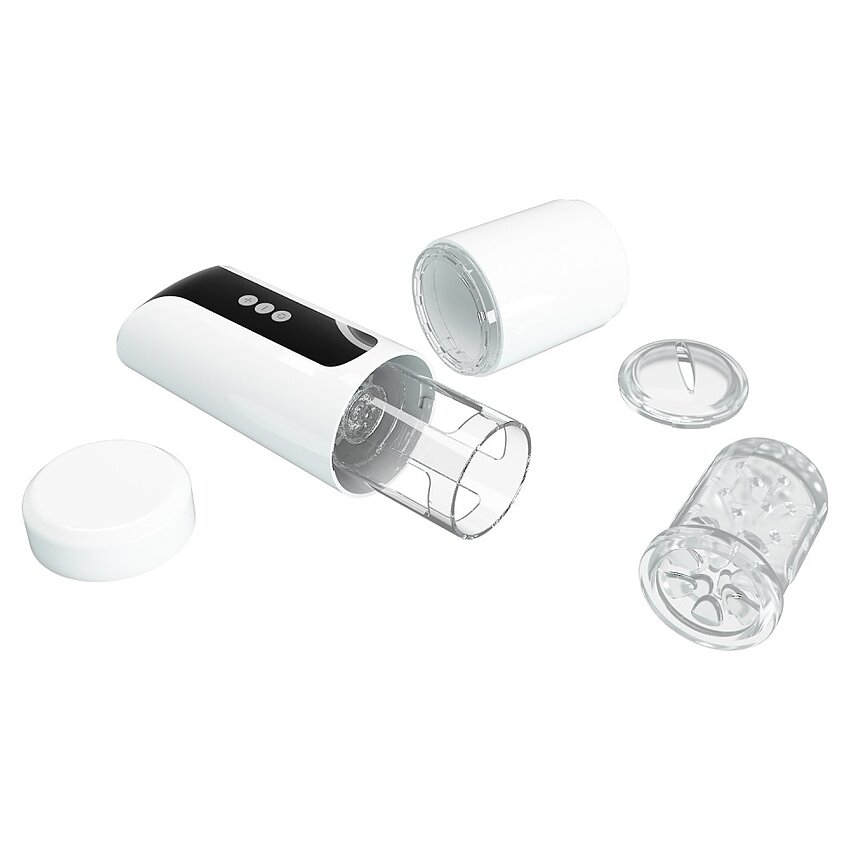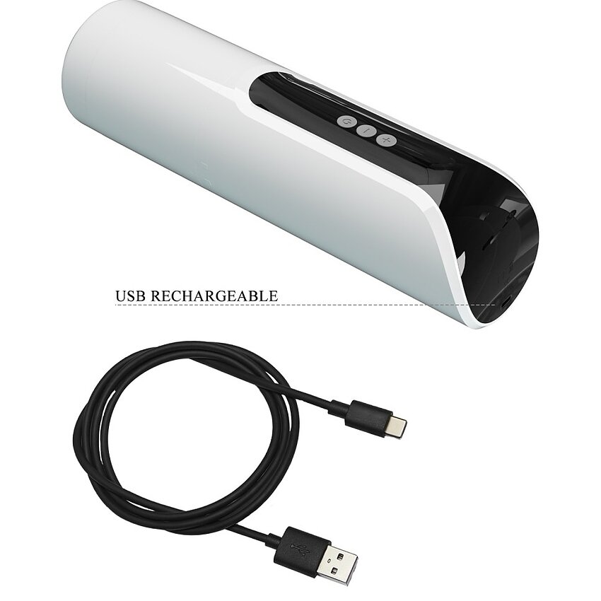 Produsul este reîncărcabil, cu un design compact și culori discrete (alb, transparent). Materialul TPR este flexibil și plăcut la atingere, plămădit pentru utilizare repetată.