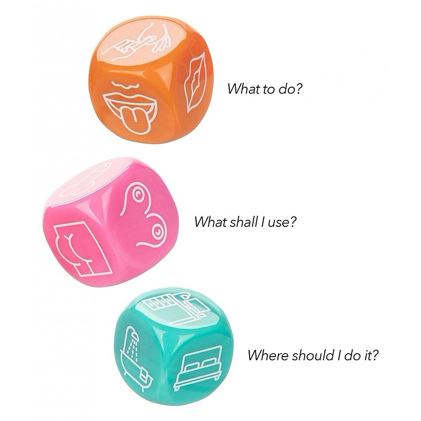 Cum se folosește: aruncați cele 3 zaruri și urmați indicațiile afișate. Produs adresat numai adulților; întrebuințați întotdeauna cu respect și consimțământ.