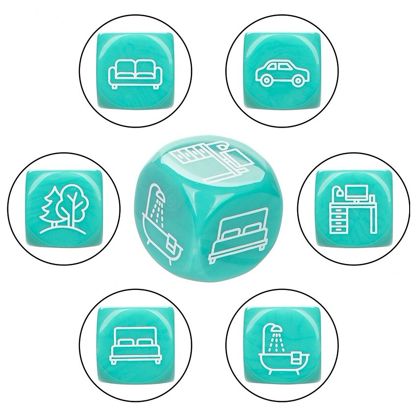 Beneficii și atribute: - Set complet: 3 zaruri pentru parte, acțiune și loc - Material durabil: acrilic, ușor de curățat - Compact și discret: perfect pentru depozitare pe noptieră sau în cutie cadou - Folosire facilă: reguli clare, rundă rapidă - Potrivit pentru cupluri care vor varietate și clipe jucăușe
