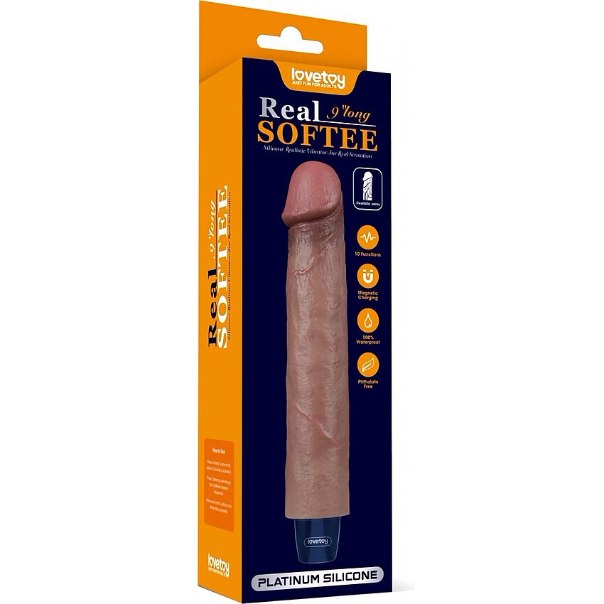 Vibrator Lovetoy Real Softee din silicon platină, jelly la atingere, cu 10 moduri de vibraţii, motor silențios şi încărcare USB. 100% impermeabil, lungime 22.8 cm (inserabil 20 cm), calibru 4 cm. Design realist pentru stimulare precisă.