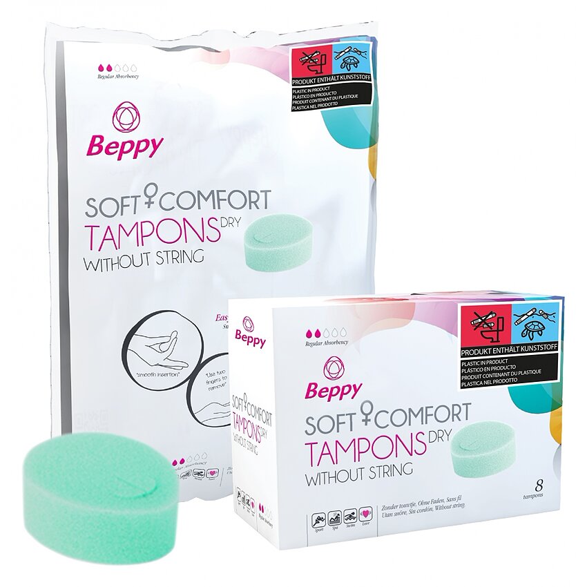 Beppy Dry este un tampon din burete, fără fir, proiectat pentru protecție discretă până la 8 ore în zilele sensibile. Buretele fin se modelează pe corp, oferind confort și libertate de mișcare — adecvat pentru înot, sport sau saună.