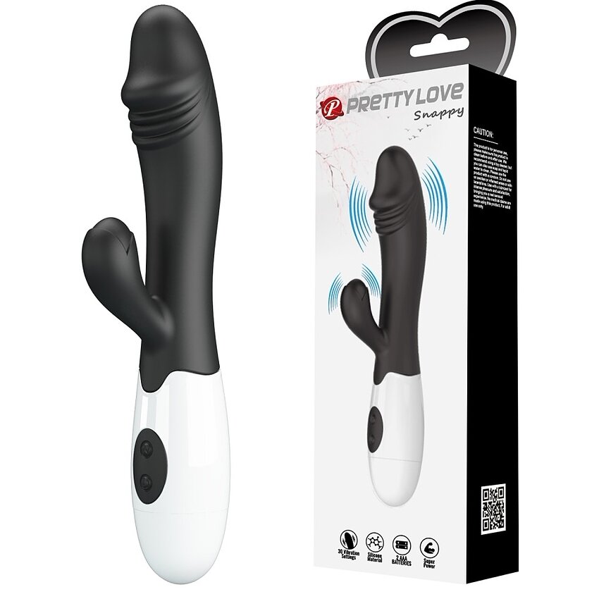 Pretty Love Snappy Black este un vibrator tip rabbit creat pentru stârnire duală: brațul maleabil aduce contact constant cu clitorisul în timp ce componentă principală vizează punctul G. Designul se conturează pe mișcări pentru o stimulare stabilă și confortabilă.