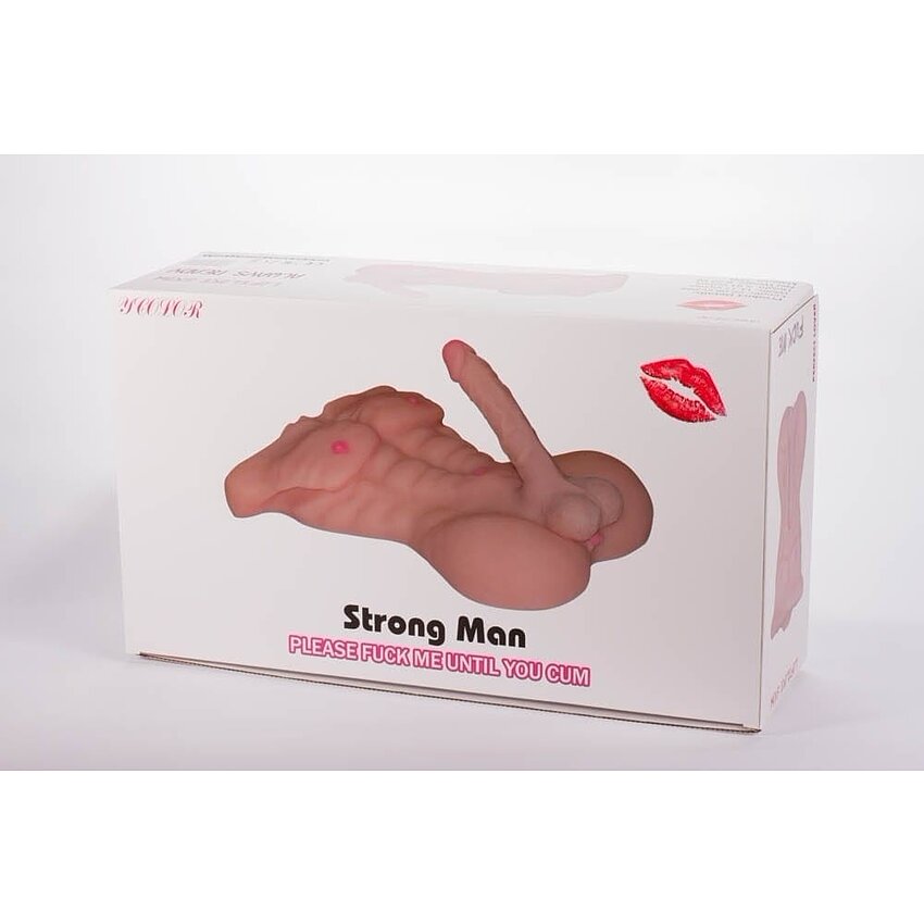 Strong Man este un torso-masturbator construit cu atenție la detalii, concretizat din TPR moale, asemănător pielii. Exemplarul reproduce trunchiul masculin cu pectorali și abdomen, include găuri realiste și un penis virtual inserabil de 17 cm (diametru 4 cm). Baza plată și greutatea de 6,25 kg aduce stabilitate în utilizare. Dimensiuni totale: 51 x 36 cm.