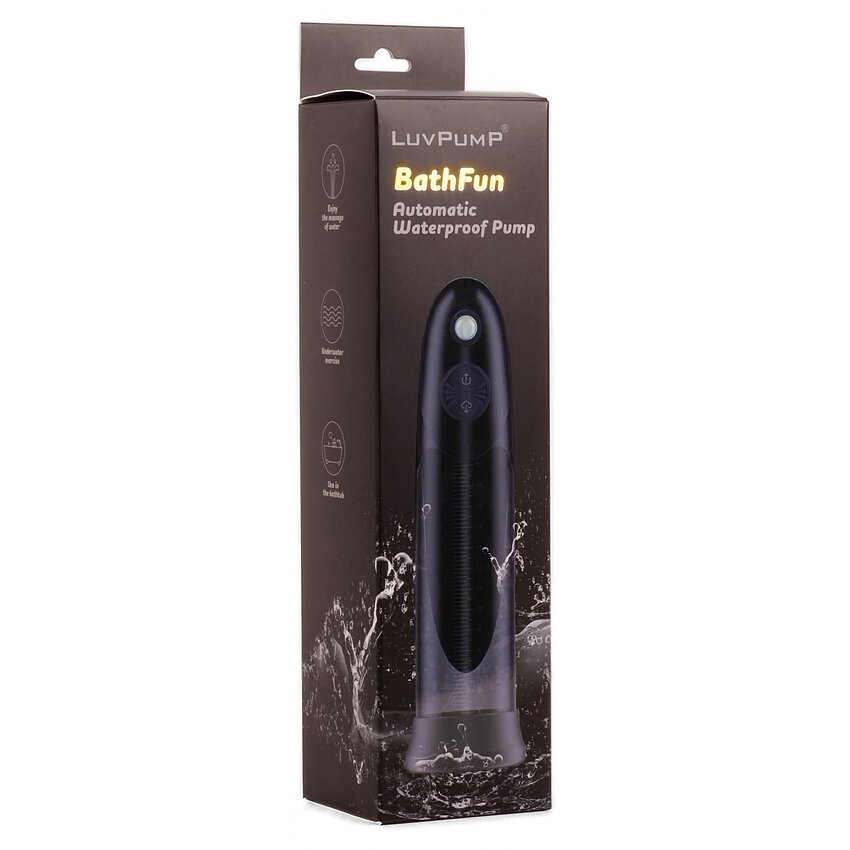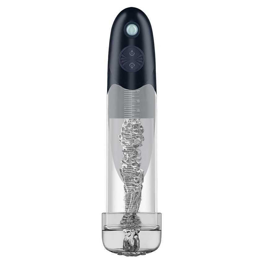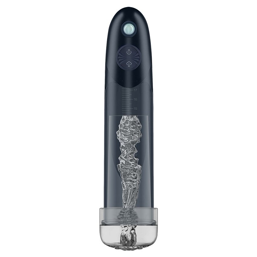 Pompă electronică Realov BathFun, proiectată pentru utilizare cu apă sau în regim uscat. Utilizează presiunea uniformă a apei pentru un vid mai constant, dar funcționează la fel de bine și minus apă. Cilindrul străveziu conține riglă în centimetri și inch pentru monitorizare precisă.