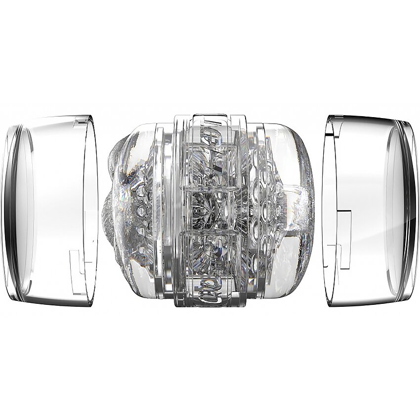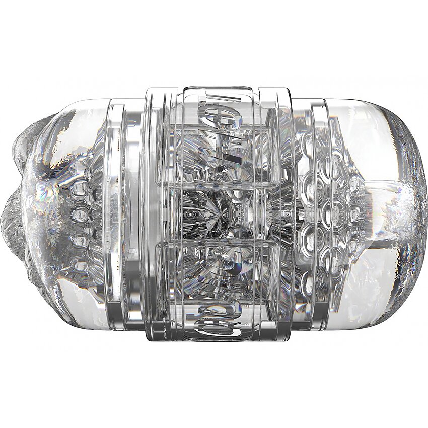 Carcasă compactă şi clară, cilindru Superskin patentat pentru textură naturală. Două deschideri modelate oferă variante de stimulare, estetică deschis pentru curăţare grabnică şi capace la ambele capete pentru depozitare igienică.