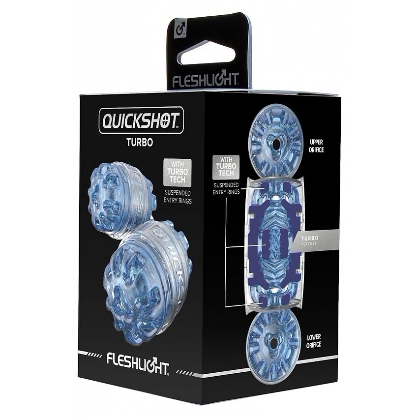 Quickshot Turbo Blue Ice de la Fleshlight este un manșon compact și discret, proiectat cu Turbo Tech pentru o prindere fermă și emoții dinamice.