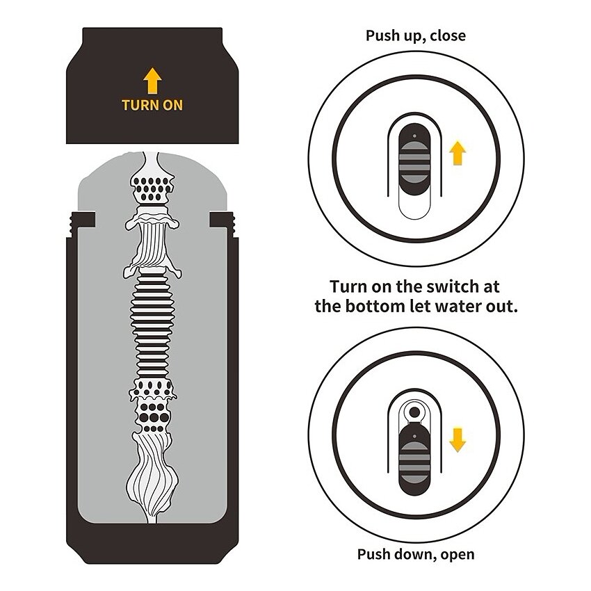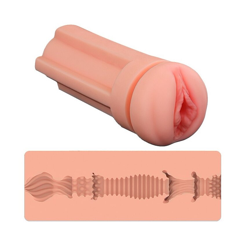 Beneficii / Atribute principale: - Material: TPE, similat pielii, moale şi flexibil, lipsit de ftalaţi, fără latex - Textură internă: ridicături, nodule şi inele pentru stimulare progresivă - Dimensiuni compacte: lungime nefragmentată 19.8 cm, calibru aprox. 7.8 cm - Estetică discret şi ergonomic, culori ton natural şi galben - Uşor de curăţat şi întreţinut