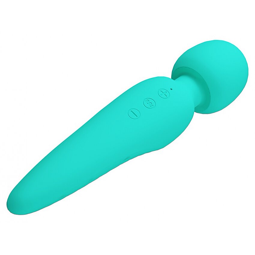 Vibrator tip wand Pretty Love Meredith, cu cap din silicon moale, 7 moduri de vibrație, 100% rezistent la apă și reîncărcabil. Compact (Ø5×21,5 cm), ușor de mânuit și cu control intuitiv pentru ajustare rapidă a intensității.