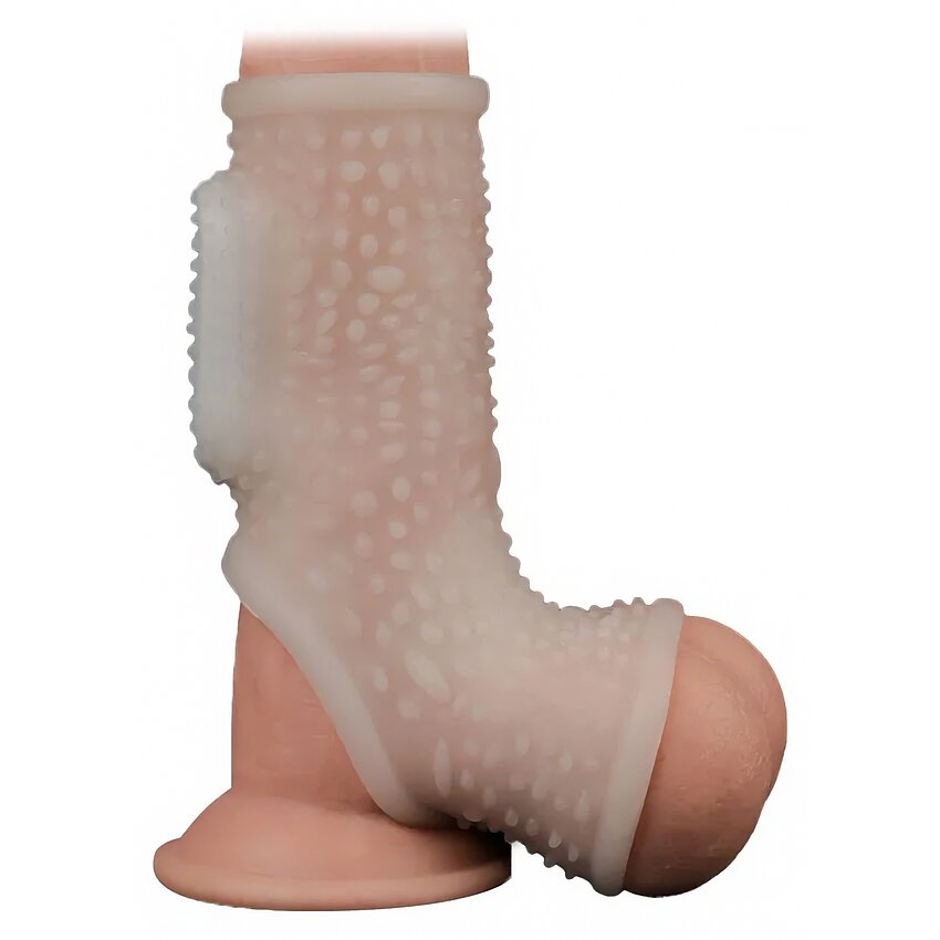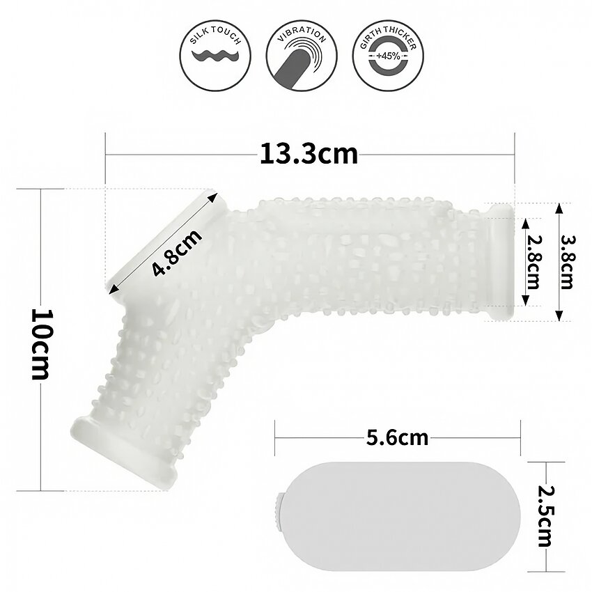 Beneficii și atribute: - Crește circumferința cu până la +45% - Cilindru elastic pentru penis și inel de susținere - Material: TPE sigur pentru corp, fără latex și ftalați - Rezistent la apă pentru utilizare și ștergere facilă - Vibrație integrată pentru stimulare discretă - Include 1 baterie CR2032 pentru pornire imediată - Reutilizabil, durabil și elastic, proiectat pentru confort Pentru a experimenta partide mai puternice si o glidare mai facila ar fi de preferat utilizarea unui lubrifiant. Spalati acest fabricat premergator folosirii cu cleaneri rarisimi de igiena pentru astfel de produse.