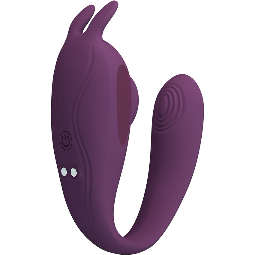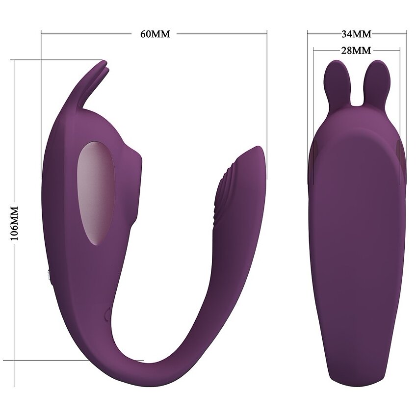 Pretty Love Shey este un stimulator compact, proiectat în formă de C pentru a se adapta natural contururilor corpului și a dărui stabilitate în timpul utilizării. Fiecare braț are rol dedicat: unul pentru stârnire externă (10 setări de pulsații), celălalt pentru stimulare internă la nivelul punctului G (10 feluri de vibrație).