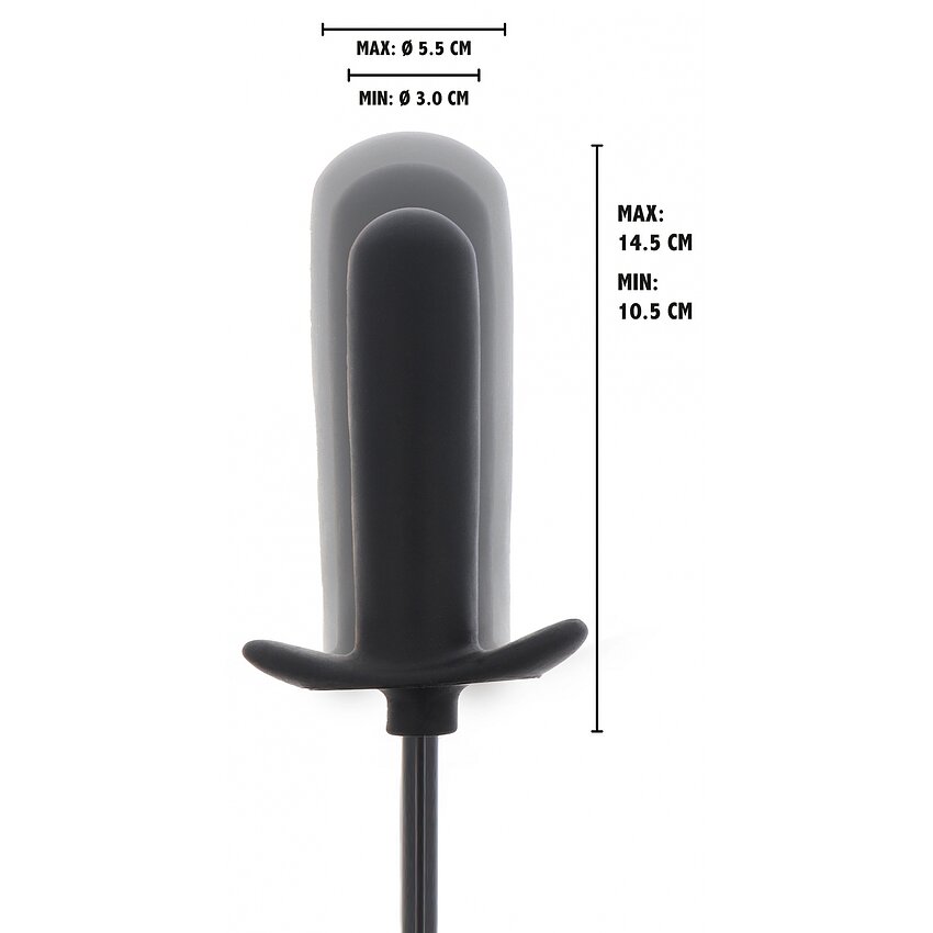 Plug anal umflat din silicon 100% pentru introducere lină și creștere controlată. Valve de eliberare rapidă pentru siguranță. Inserabil 10.5–14.5 cm, diametru 3–5.5 cm. Excelent pentru reglaj progresiv.
