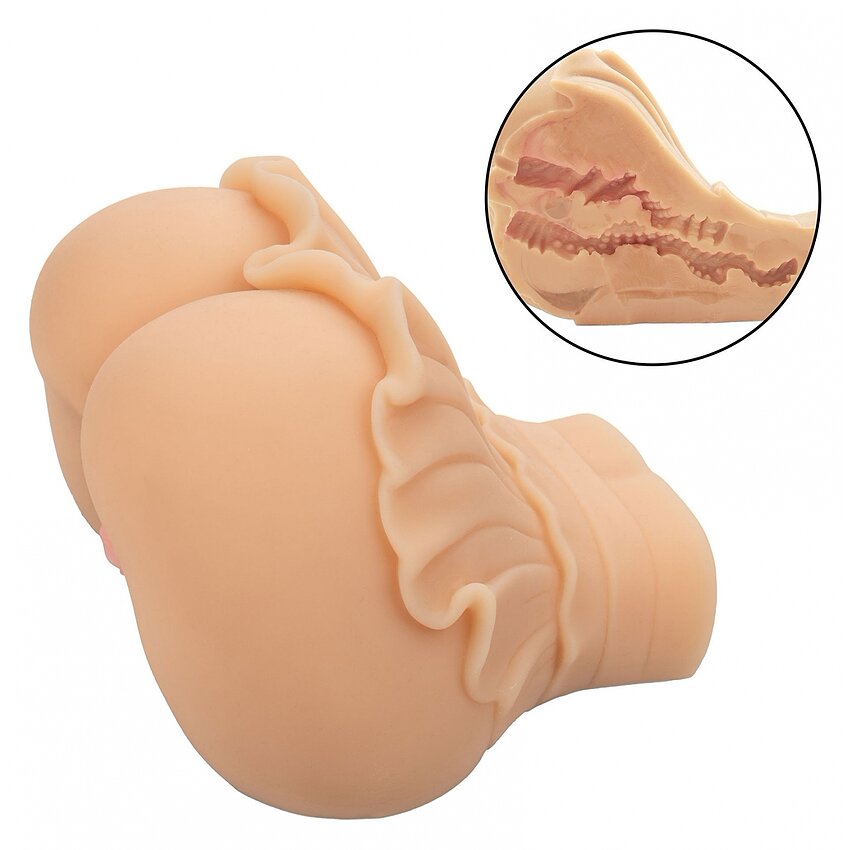 Masturbator CalExotics Peep Show Girl, din TPE realist, cu structură internă multi-texturată și două intrări (vaginală/anal). Cap închis pentru sucțiune intensificată, extensibil și impermeabil. Curățare simplă.
