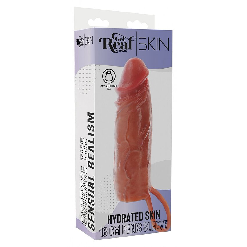 Manșon Hydrated Skin de la ToyJoy, din silicon 100% moale, 16 cm. Stil dublu care reține lubrifiantul, partea interioară texturat pentru stimulare, bază flexibilă pentru fixare, perfect robust la apă și ușor de curățat.