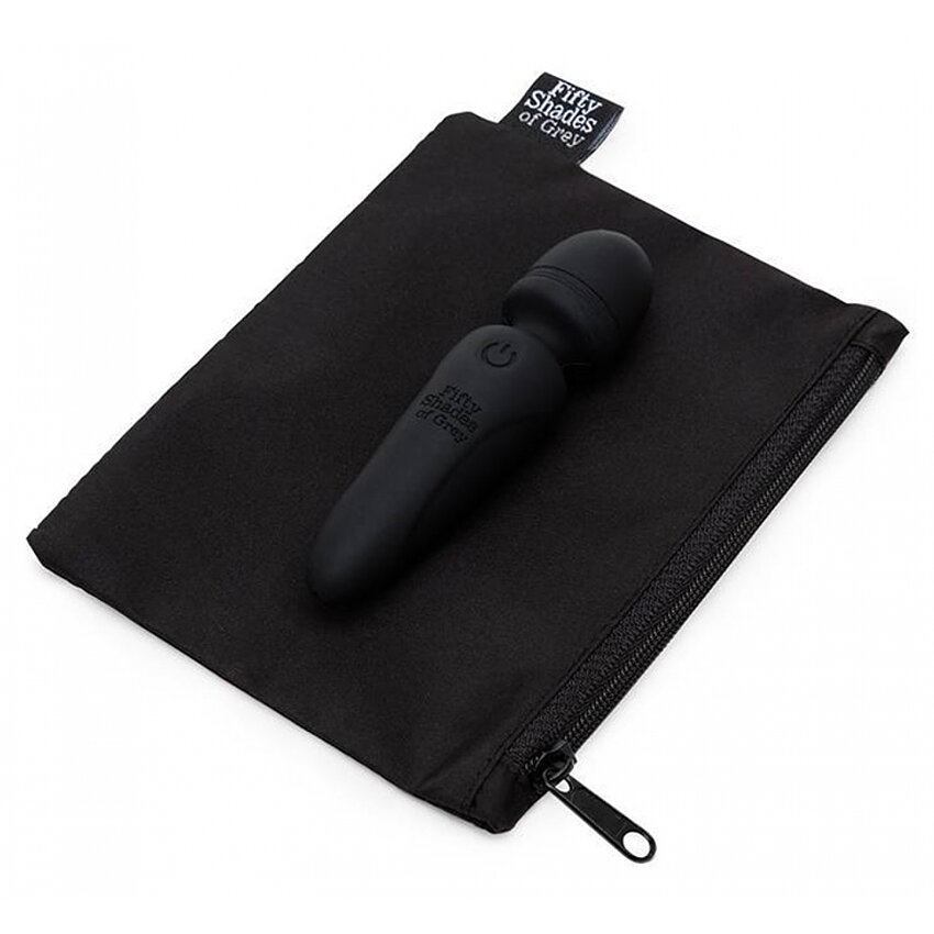 Mini Wand compact din colecția Fifty Shades Of Grey: corp din silicon fin, cap rotund ferm și 20 feluri de vibrație. Cu acumulator USB, autonomie aprox. 80 minute, husă din plastic reciclat. Potrivit pentru uz extern; curățați și folosiți lubrifiant pe bază de apă.