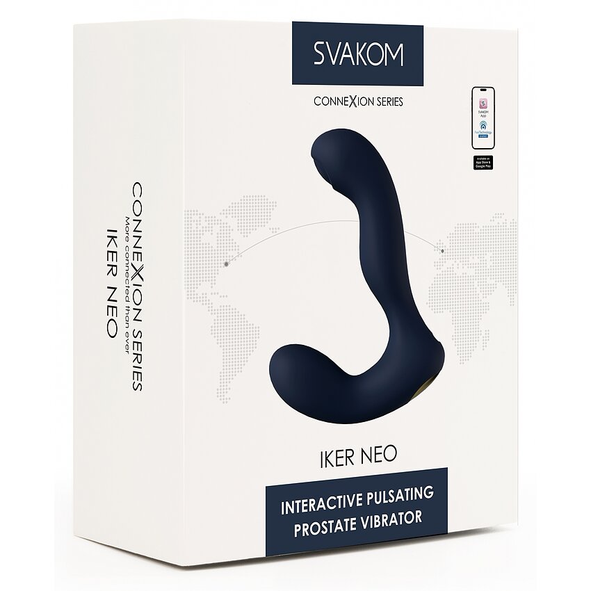 Iker Neo de la Svakom este un vibrator prostatic pulsant, cu formă bulbous și gât elastic pentru poziționare precisă. Are 5 chipuri de vibrație și 5 setări de pulsație, motor silențios, memorie, blocare pentru transport și control prin aplicația SVAKOM.