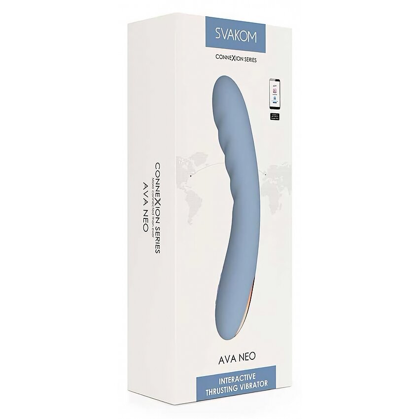 Ava Neo de la Svakom este un vibrator conceput pentru stârnire profundă prin combinația de împingere și vibrație controlabile separat. Capul amortizat și suprafața din silicon lichid asigură alunecare blândă și confort în utilizare. Designul submersibil permite folosirea la duș sau baie și curățarea facilă.
