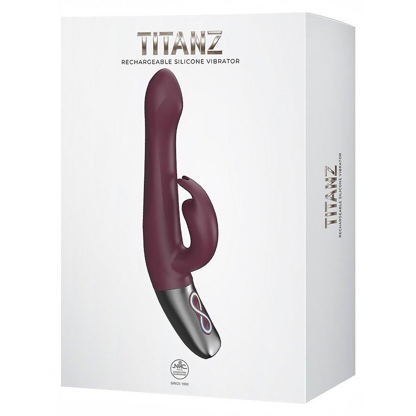 Titanz de la NMC este un vibrator tip rabbit, creat din silicon de înaltă excepție cu suprafaţă uşor striată pentru contact plăcut. Capul combină 10 feluri de vibraţie şi 10 chipuri de rotaţie pentru stârnire variată; bratul pentru clitoris are 10 setări independente.