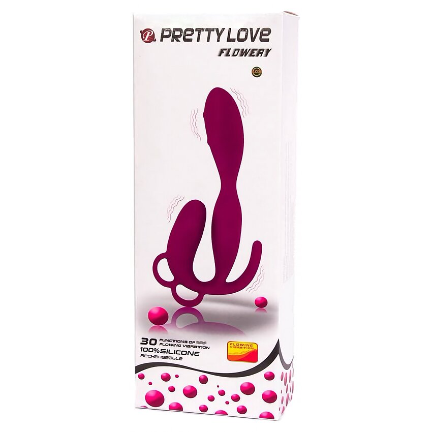 Plug reîncărcabil Pretty Love Flowery din silicon sigur pentru corp, 30 chipuri de vibrație, rezistent la apă, USB reîncărcabil. Trei brațe pentru stimulare internă, anală și clitoridiană; ansamblu de prindere adaptat corpului pentru utilizare solo.