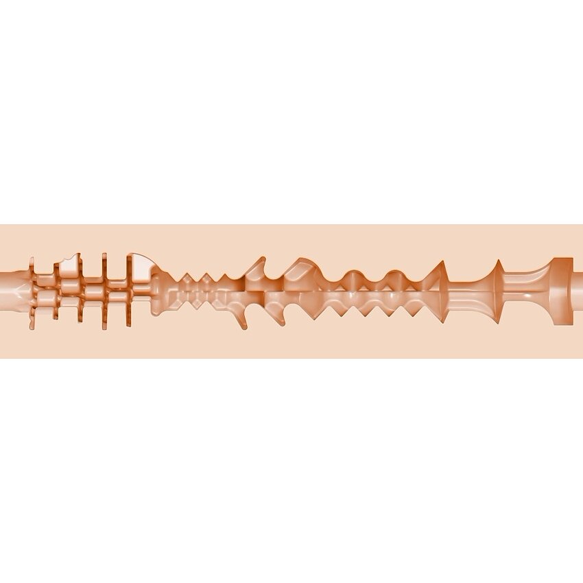 Interiorul combină straturi răsucite care conduc spre un centru notched, urmat de o cascadă de nervuri — configurație gândită pentru tărie progresivă și senzaţii diverse pe parcursul utilizării.