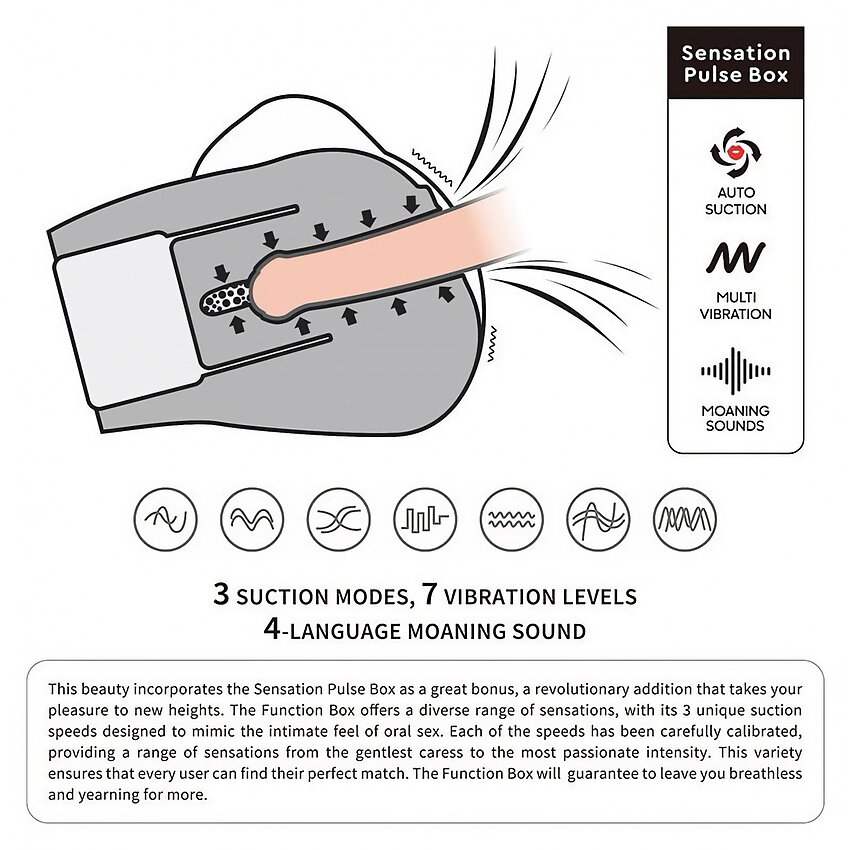 Designul confortabil și materialul vigilent ales oferă o senzație naturală; cele 3 trepte de aspirație și cele 7 frecvențe de vibrație încuviințează reglaje fine pentru preferințe variate. Elasticitatea materialului se adaptează în timp, ceea ce poate face intrarea mai lejeră la utilizările ulterioare.