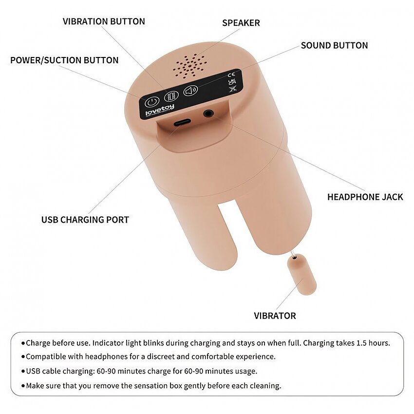 Curățare simplă: scoateți unitatea Sensation Pulse Box cândva de igienizare, clătiți canalul sub jet de apă și uscați-l complet. Pentru confort sfătuim agent lubrifiere pe bază de apă; evitați solvenții agresivi.