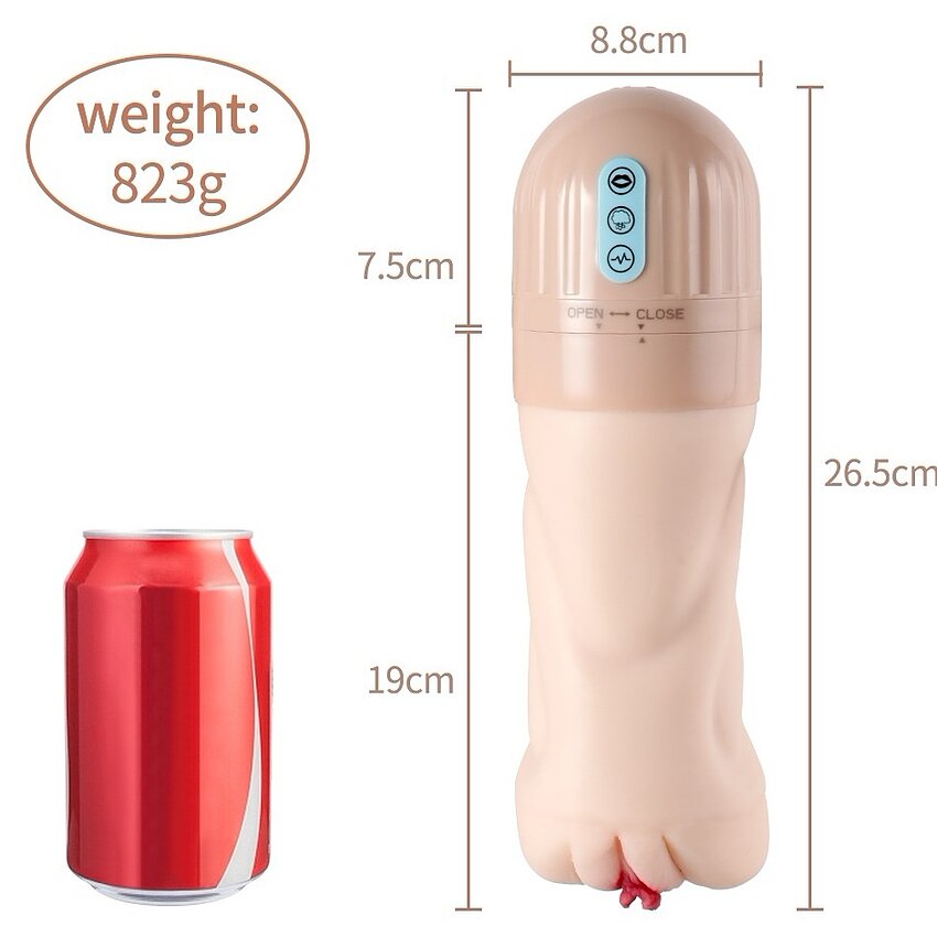 Aparat compact pentru bărbați: 5 nivele de suctiune, 10 trepte de vibrație, 2 motoare puternice. Interior moale, texturat, drenaj automat și reîncărcabil. întrebuințați lubrifiant pe bază de apă; ștergere simplă.