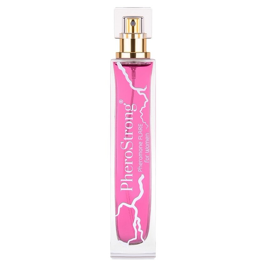 Parfum PheroStrong Flare 50 ml — note de piper roz, bergamotă, trandafir și iasomie, pe bază de vanilie și ambră. Sporește încrederea, atrage priviri și amplifică prezența într-un mod discret.