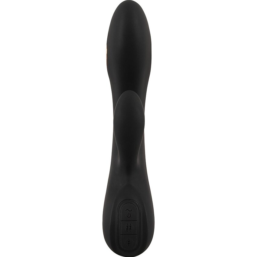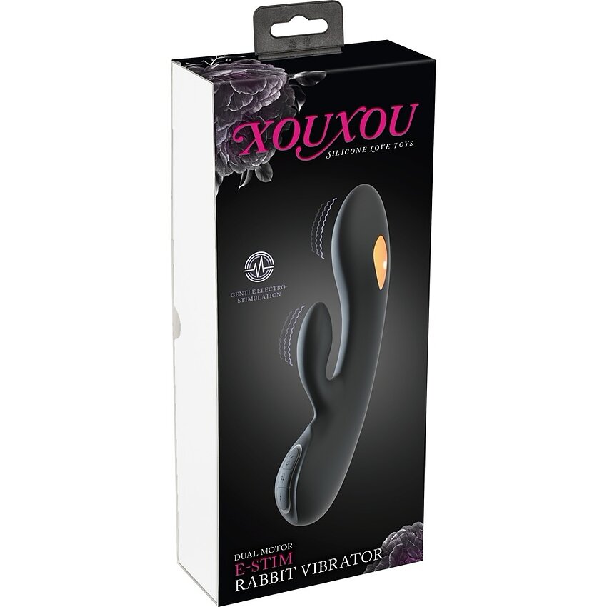 Vibrator rabbit XOUXOU cu E-Stim și tremurări duale: 2 motoare, 10 moduri e-stim și 10 moduri de vibrație. Silicon Soft-Touch, cu acumulator USB, durabil la apă. Mărime 20.5 cm, inserabil 11.5 cm.