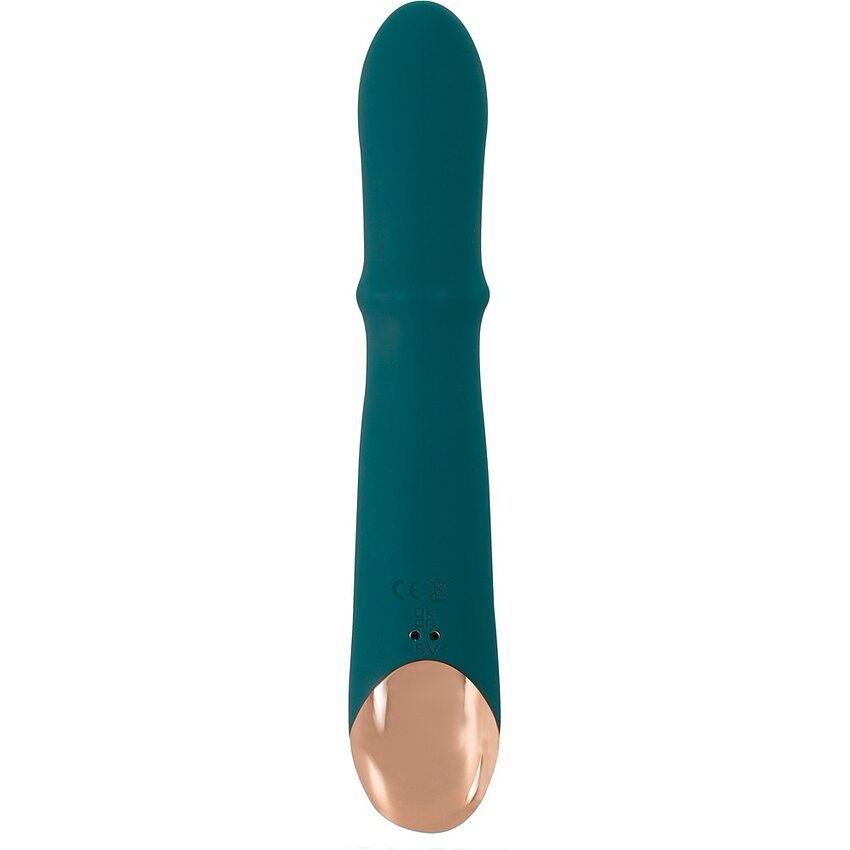 Vibratorul Rabbit Thumping de la You2Toys combină stimularea internă cu pulsuri dinamice pentru clitoris: inel mobil cu 10 moduri, cap cu 7 maniere și 3 motoare puternice. Silicon catifelat, cu acumulator USB și rezistent la apă. Control simplu, braț flexibil pentru contact confortabil.