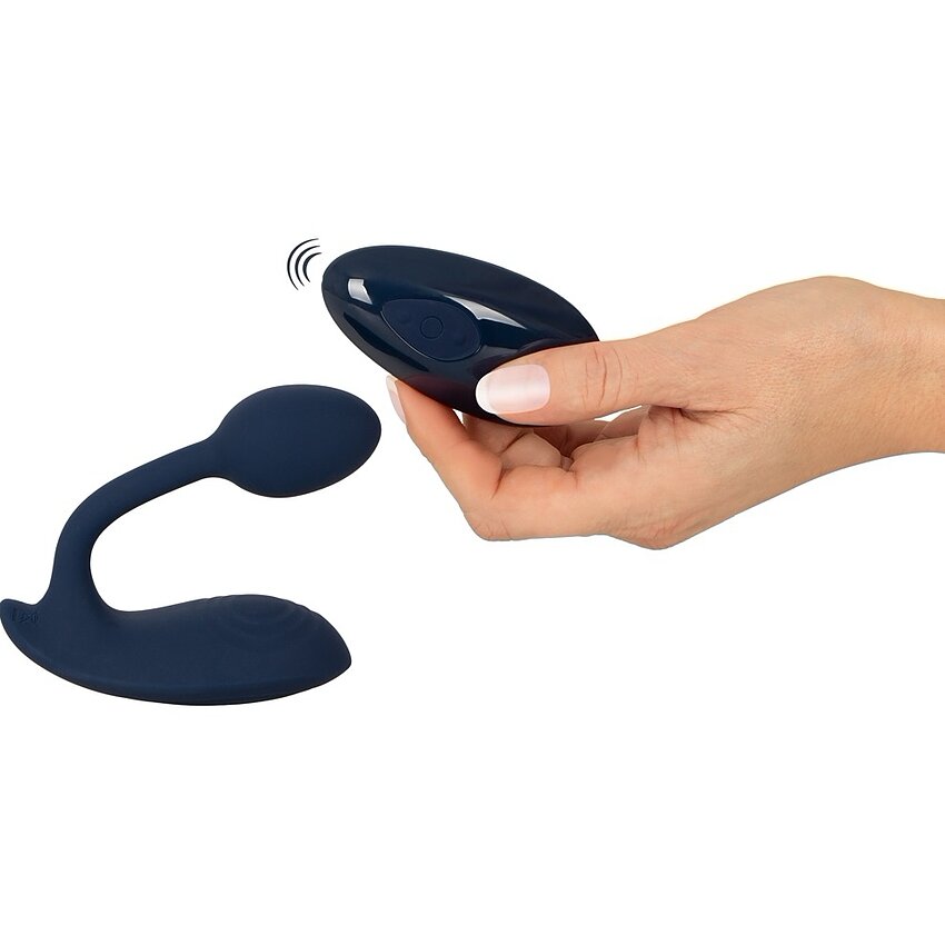 Beneficii și atribute: - 2 motoare independente: stimulare vaginală + clitoridiană - 10 maniere variate de vibrație pentru adaptare la preferințe - Tele-comandă wireless cu rază până la 5 m + control local - Reîncărcabil (cablu USB inclus); baterii 2 x AAA pentru telecomandă incluse - Material fin și design pliabil pentru confort prelungit - Viguros la apă și ambalaj eco-friendly